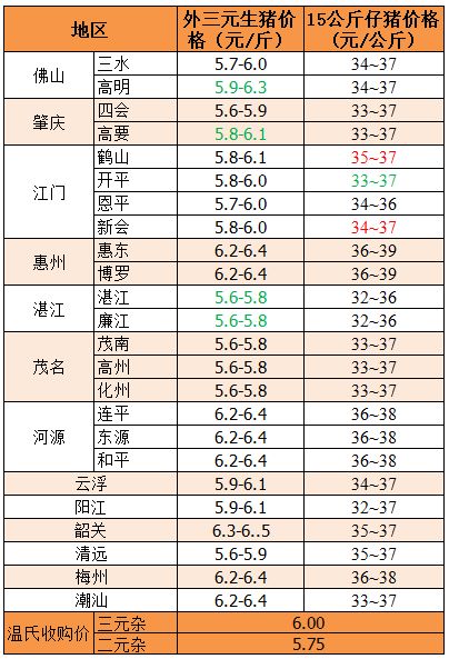 【养猪信息网今日猪评】:3月7日,广东外三元收购价格以稳为主。温氏接货价稳定,三元杂接货价为6.0元/斤,二元杂接货价为5.75元/斤 。